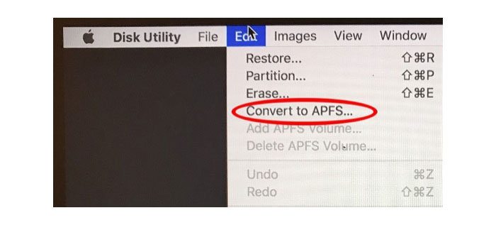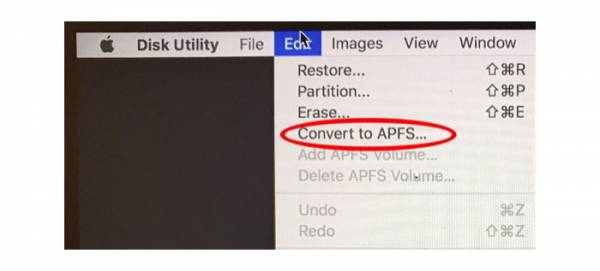 Шаг 4: В меню редактирования выберите опцию «Конвертировать в APFS» (она не будет доступна, если вы выбрали не загрузочный диск).