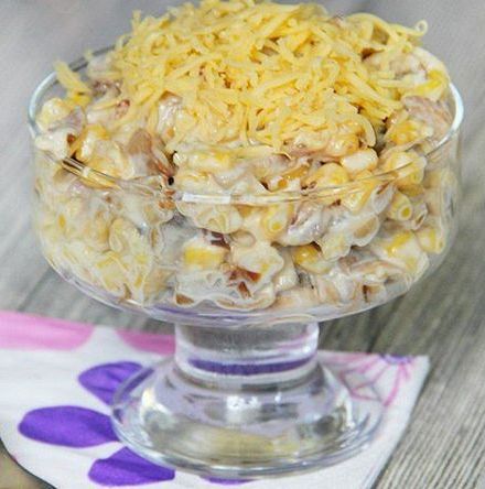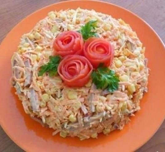 Очень простой в приготовлении и вкусный салатик. Трем на крупной терке сырую морковь, сыр твердых сортов, режем соломкой полукопченую колбасу, добавляем консервированную кукурузу, несколько зубчиков чеснока, заправляем майонезом. Как видно из процесса приготовления, вряд ли он займет у вас много времени.